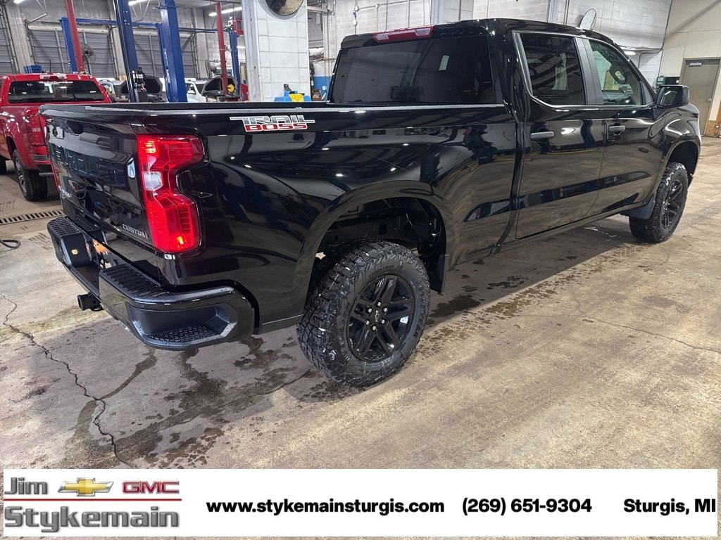 Black 2026 Chevrolet Silverado 1500 Custom Trail Boss 4WD 10-Speed Automatic EcoTec3 5.3L V8 * Apple CarPlay/Android Auto *, * USB ADAPTER *, * BLUETOOTH *, * 4WD *, **Call 269-651-9304**, Silverado 1500 Custom Trail Boss, 4D Crew Cab, EcoTec3 5.3L V8, 4WD, Black, 10-Way Power Driver Seat w/Lumbar, 120-Volt Bed Mounted Power Outlet, 120-Volt Interior Power Outlet, 3.5 Monochromatic Display Driver Info Center, 6-Speaker Audio System, All-Weather Floor Liner (LPO) (AAK), AM/FM radio: SiriusXM, Apple CarPlay/Android Auto, Auto High-beam Headlights, Auto-Locking Rear Differential, Automatic Emergency Braking, Bluetooth® For Phone, Brake assist, Color-Keyed Carpeting Floor Covering, Custom, Deep-Tinted Glass, Delay-off headlights, Dual front impact airbags, Dual Rear USB Ports (Charge Only), Electric Rear-Window Defogger, Electronic Cruise Control, Electronic Stability Control, Emergency communication system: OnStar, EZ Lift Power Lock & Release Tailgate, Following Distance Indicator, Front Pedestrian Braking, Front Rubberized Vinyl Floor Mats, Fully automatic headlights, HD Rear Vision Camera, Heated door mirrors, Heavy-Duty Air Filter, Hill Descent Control, Hitch Guidance, IntelliBeam Automatic High Beam On/Off, LED Cargo Area Lighting, Manual Tilt Wheel Steering Column, OnStar Services Capable, Performance Red Recovery Hooks, Power Front Windows w/Driver Express Up/Down, Power Front Windows w/Passenger Express Down, Power Rear Windows w/Express Down, Preferred Equipment Group 2CX, Radio data system, Rear 60/40 Folding Bench Seat (Folds Up), Rear Rubberized-Vinyl Floor Mats, Remote Keyless Entry, Remote Vehicle Starter System, SiriusXM Trial Subscription, Standard Tailgate, Suspension Package, Teen Driver, Theft Deterrent System (Unauthorized Entry), Tire Pressure Monitoring System, Trailering Package, Wheels: 18 x 8.5 Black Painted Aluminum, Wi-Fi Hot Spot Capable.
