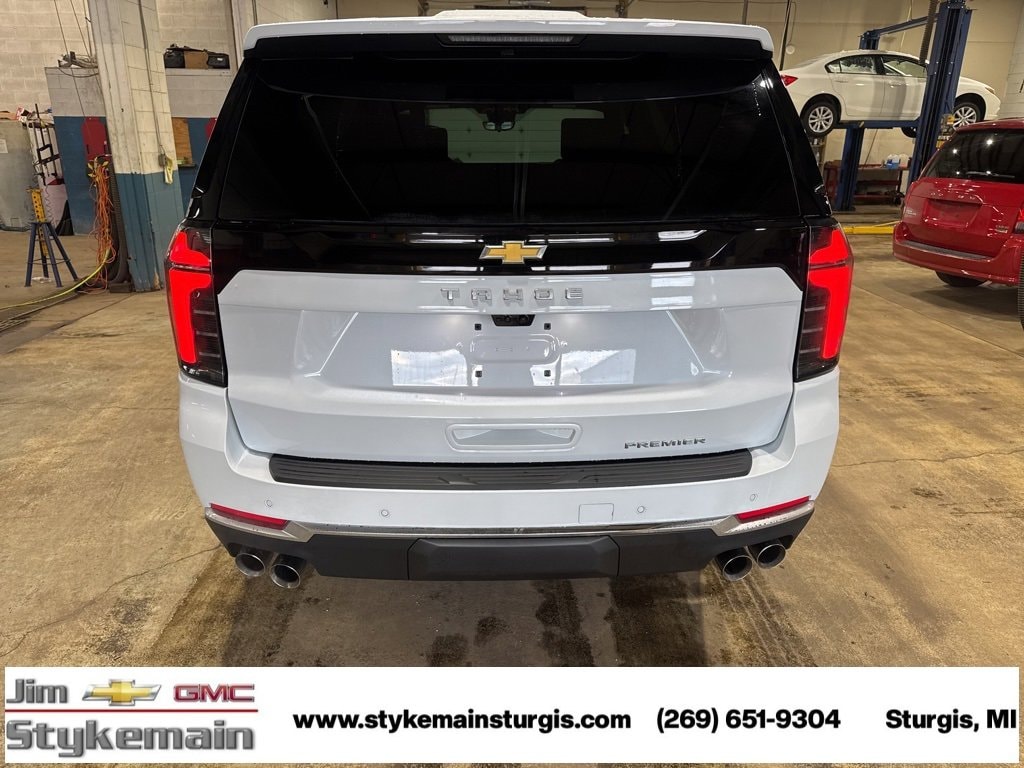 Polar White Tricoat 2026 Chevrolet Tahoe Premier Dual-Pane Power Panoramic Sunroof 4WD 10-Speed Automatic with Overdrive EcoTec3 5.3L V8 * Apple CarPlay/Android Auto *, * USB ADAPTER *, * BLUETOOTH *, * LEATHER *, * HEATED SEATS *, * KEYLESS START *, * SUNROOF *, * 3RD ROW SEATS *, * REMOTE ENGINE START *, * POWER REAR LIFTGATE *, * Park Assist *, * 4WD *, **Call 269-651-9304**, 4WD, Jet Black w/Perforated Leather Seat Trim, 10 Speakers, 15 Diagonal Multi-Color Head-Up Display, 1st and 2nd Row Color-Keyed Carpeted Floor Mats, 3-Spoke Wrapped Steering Wheel, 3rd Row 60/40 Power-Folding Split-Bench Seat, 4-Way Power Front Passenger Lumbar Seat Adjuster, 4-Wheel Disc Brakes, 8-Way Power Driver Seat Adjuster, 8-Way Power Front Passenger Seat Adjuster, ABS brakes, Adaptive suspension, Advanced Security Package, Air Conditioning, Apple CarPlay/Android Auto, Auto-Dimming Inside Rear-View Mirror, Automatic temperature control, AutoSense Hands-Free Power Liftgate, Bose 10-Speaker Centerpoint Surround Audio System Feature, Brake assist, Bright Front and Rear Door Sill Plates, Chrome Door Handles with Body-Color Strip, Chrome Mirror Caps, Color-Keyed Carpeting Floor Covering, Dual Exhaust System, Dual front side impact airbags, Dual-Pane Power Panoramic Sunroof, Electronic Stability Control, Floor Console, Front Bucket Seats, Front fog lights, Front LED Fog Lamps, Frontal Driver and Outboard Passenger Airbags, Glass Breakage Sensor, Heated 2nd Row Outboard Seats, Heated Driver and Front Passenger Seats, Heated rear seats, Heated Steering Wheel, Inside Rearview Auo-Dimming Rear Camera Mirror, Interior Camera, Key Card, LED Headlamps with LED Daytime Running Lamps, LED Tail Lamps, Magnetic Ride Control Suspension, Memory Settings, Navigation system: Google built-in compatibility (select service plan required, terms and limitations apply), Outside Heated Power-Adjustable Mirrors, Overhead airbag, Overhead console, Power Liftgate, Power Release 2nd Row Bucket Seats, Power steering, Power Tilt and Telescopic Steering Column, Power windows, Preferred Equipment Group 1LZ, Premium audio system: Chevrolet Infotainment 3 Premium, Radio data system, Rain sensing wipers, Rear air conditioning, Rear Power Liftgate, Rear Seat Media System, Rear window wiper, Remote Start, Set of 4 Wheel Locks, SiriusXM with 360L Trial Subscription, Tachometer, Technology & Entertainment Package, Technology Package, Telescoping steering wheel, Theft-Deterrent Alarm System, Tilt steering wheel, Universal Home Remote, Variably intermittent wipers, Vehicle Inclination Sensor, Vehicle Interior Movement Sensor, Wheels: 22 x 9 Polished Aluminum, Wireless Phone Charging.
