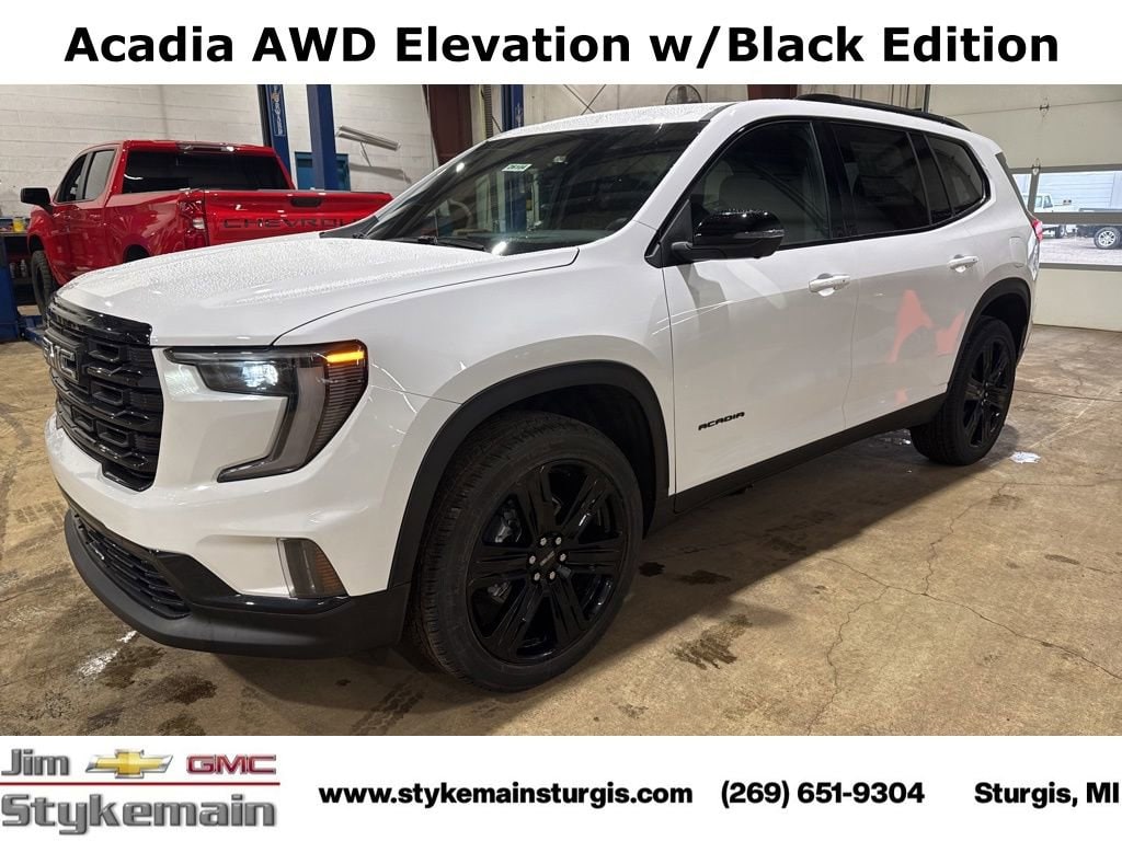 Summit White 2026 GMC Acadia Elevation AWD 8-Speed Automatic 2.5L DOHC * Apple CarPlay/Android Auto *, * USB ADAPTER *, * BLUETOOTH *, * NAVIGATION GPS NAV *, * LEATHER *, * HEATED SEATS *, * 3RD ROW SEATS *, * REMOTE ENGINE START *, * POWER REAR LIFTGATE *, * AWD *, **Call 269-651-9304**, Acadia Elevation, 4D Sport Utility, AWD, Summit White, After Dark w/CoreTec Seat Trim, 3-Channel Programmable Universal Home Remote, 4-Wheel Disc Brakes, 6-Way Power Front Passenger Seat Adjuster, 7-Passenger Seating (2-2-3 Seating Configuration), 8 Diagonal Head-Up Display, ABS brakes, Air Conditioning, AM/FM radio: SiriusXM with 360L, Apple CarPlay/Android Auto, Automatic temperature control, Black Edition, Bose Premium 12-Speaker System w/Sub-Woofer, CoreTec Seat Trim, Delay-off headlights, Driver 2-Way Power Lumbar Seat Adjuster, Dual front side impact airbags, Electronic Stability Control, Elevation Premium Package, Four wheel independent suspension, Front & Rear Black GMC Emblems (LPO), Front anti-roll bar, Front dual zone A/C, Front fog lights, Front Passenger Power Lumbar Seat Adjuster, Fully automatic headlights, Gloss Black Roof Rails, Heated Rear Outboard Seating Positions, Heated steering wheel, Heated Wiper Park, High Gloss Black Door Upper Moldings, Laminated Acoustic Glass, Leather steering wheel, Luxury Package, Navigation System, Overhead airbag, Overhead console, Performance Suspension, Power driver seat, Power Liftgate, Preferred Equipment Group 4SD, Radio data system, Rear seat center armrest, Rear side impact airbag, Rear window defroster, Rear window wiper, Remote keyless entry, SiriusXM w/360L, Speed control, Sport steering wheel, Steering wheel mounted audio controls, Tilt steering wheel, Trip computer, Variably intermittent wipers, Wheels: 22 x 8.5 Gloss Black Aluminum.