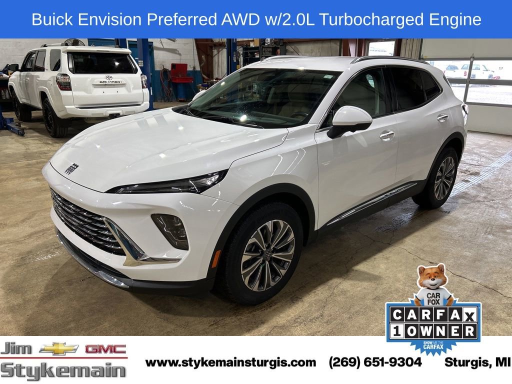 2024 Buick Envision Preferred Summit White * Apple CarPlay/Android Auto *, * USB ADAPTER *, * BLUETOOTH *, * HEATED SEATS *, * KEYLESS START *, * AWD *, **Call 269-651-9304**, Envision Preferred, 4D Sport Utility, 2.0L Turbocharged, AWD, Summit White, Sandstone Premium Synthetic, ABS brakes, Air Conditioning, Alloy wheels, AM/FM radio: SiriusXM, Auto High-beam Headlights, Automatic temperature control, Bose Premium 9-Speaker Audio System Feature, Bumpers: body-color, Delay-off headlights, Driver 8-Way Power Seat Adjuster, Dual front impact airbags, Electronic Stability Control, Emergency communication system: OnStar and Buick connected services capable, Four wheel independent suspension, Front Bucket Seats, Front Center Armrest, Heads-Up Display, Knee airbag, Navigation System, Occupant sensing airbag, Overhead airbag, Panic alarm, Perforated Leatherette Seat Trim, Power driver seat, Power Liftgate, Power steering, Power windows, Preferred Equipment Group 1SC, Premium audio system: Buick Infotainment System, Radio: 30 Diagonal Ultra-Wide Display, Rear window defroster, Rear window wiper, Security system, SiriusXM Radio, Speed control, Steering wheel mounted audio controls, Telescoping steering wheel, Trip computer, Variably intermittent wipers, Wheels: 18 Alloy w/Technical Gray, Wireless Apple CarPlay/Wireless Android Auto.