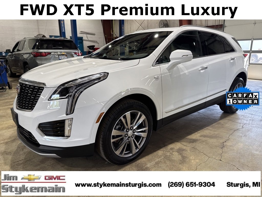 2024 Cadillac XT5 Premium Luxury Crystal White Tricoat * Apple CarPlay/Android Auto *, * USB ADAPTER *, * BLUETOOTH *, * NAVIGATION GPS NAV *, * LEATHER *, * HEATED AND COOLED SEATS *, * KEYLESS START *, * SUNROOF *, * ONE OWNER *, * REMOTE ENGINE START *, * POWER REAR LIFTGATE *, XT5 Premium Luxury, 2.0L Turbocharged, FWD, Jet Black w/Leather Seats w/Mini Perforated Inserts, 14 Speakers, 2-Way Power Driver Lumbar Control Seat Adjuster, 2-Way Power Passenger Lumbar Control Seat Adjuster, 4-Wheel Independent Suspension, ABS brakes, Air Conditioning, AM/FM radio: SiriusXM, Audio memory, Auto High-beam Headlights, Auto-dimming door mirrors, Automatic Dual-Zone Climate Control, Automatic Emergency Braking, Automatic Stop/Start w/Disable, Automatic temperature control, Bodyside moldings, Bose Performance Series 14-Speaker System, Brake assist, Compass, Delay-off headlights, Driver vanity mirror, Dual Driver Info Center Display Gauge Cluster, Dual front side impact airbags, Electronic Stability Control, Emergency communication system: OnStar and Cadillac connected services capable, Four wheel independent suspension, Front & Rear Park Assist, Front Bucket Seats, Front Center Armrest, Front dual zone A/C, Fully automatic headlights, Garage door transmitter, Genuine wood dashboard insert, HD Rear Vision Camera, Heated Driver & Front Passenger Seats, Heated front seats, Heated steering wheel, Inside Rear-View Auto-Dimming Mirror, Leather Seating Surfaces w/Mini Perforated Inserts, Memory seat, Navigation System, Occupant sensing airbag, Outside temperature display, Panic alarm, Power Liftgate, Power moonroof: UltraView, Power passenger seat, Power steering, Power windows, Premium Luxury Package 1SC, Radio: Cadillac User Experience w/Embedded Nav, Rain sensing wipers, Rear window defroster, Rear window wiper, Remote keyless entry, Security system, SiriusXM w/360L, Speed control, Steering wheel mounted audio controls, Teen Driver, Tilt steering wheel, Trip computer, Variably intermittent wipers, Wheels: 20 6-Split Spoke Alloy, Wireless Apple CarPlay/Wireless Android Auto, Wireless Phone Charging. Jim Stykemain Chevrolet GMC in Sturgis MI is closer than you think. On the corner of M66 and US12 in Sturgis. Driving time to Jim Stykemain Chevrolet GMC: La Grange = 15 minutes, White Pigeon = 18 minutes, Three Rivers = 22 minutes, Coldwater = 30 minutes. Elkhart = ONLY 39 MINUTES! COME CHECK US OUT. Visit us online at STYKEMAINSTURGIS.COM Proudly serving: Sturgis, Howe, LaGrange, Elkhart, Kalamazoo, Angola, Portage, Battle Creek, Detroit, Indianapolis, South Bend, Fort Wayne, and all of greater Ohio, Michigan, and Indiana.