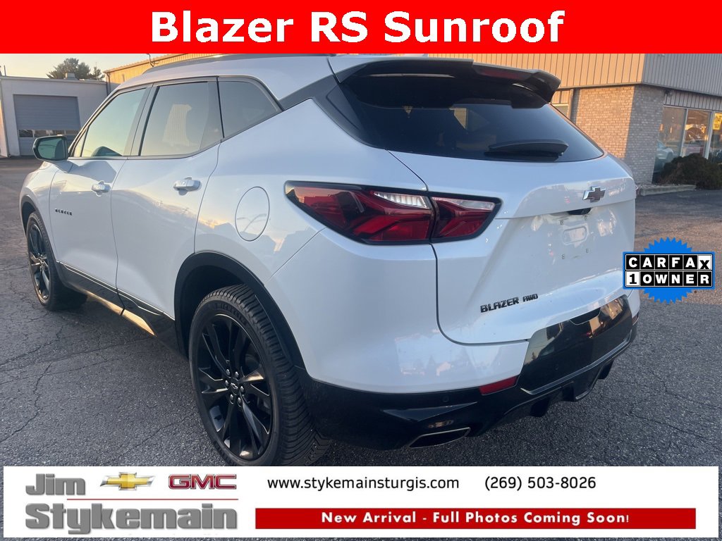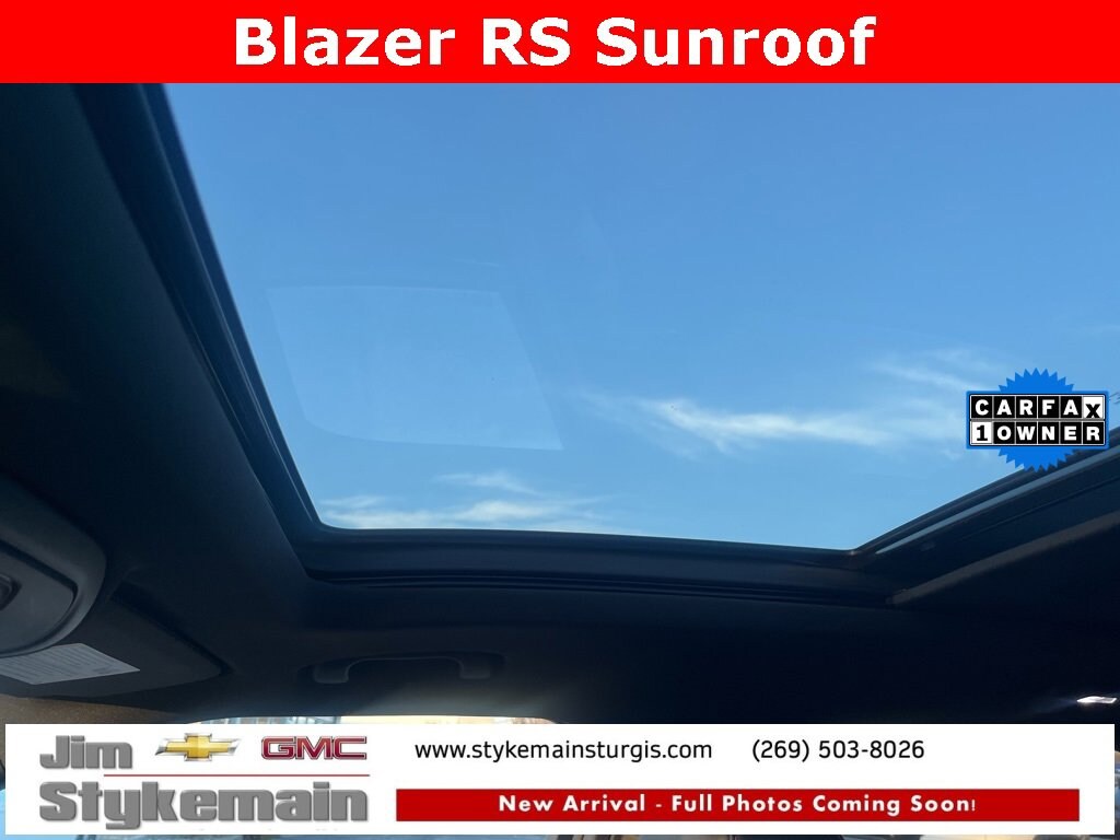 2021 Chevrolet Blazer RS Sunroof Iridescent Pearl Tricoat * Apple CarPlay/Android Auto *, * USB ADAPTER *, * BLUETOOTH *, * LEATHER *, * HEATED SEATS *, * HEATED AND COOLED SEATS *, * KEYLESS START *, * SUNROOF *, * ONE OWNER *, * CLEAN VEHICLE HISTORY...NO ACCIDENTS *, * RECENT TRADE IN *, * REMOTE ENGINE START *, * POWER REAR LIFTGATE *, * AWD *, *** COMPLEMENTARY 3 MONTH - 3,000 MILE POWERTRAIN WARRANTY ***, **Call 269-651-9304**, Blazer RS Sunroof, AWD, Iridescent Pearl Tricoat, Jet Black Leather, 6 Speakers, 6-Speaker Audio System Feature, Adaptive Cruise Control, Air Conditioning, Apple CarPlay/Android Auto, Brake assist, Cargo Package (LPO), Driver Confidence II Package, Electronic Stability Control, Emergency communication system: OnStar and Chevrolet connected services capable, Enhanced Automatic Emergency Braking, Enhanced Convenience Package, Exterior Parking Camera Rear, Front Bucket Seats, Front dual zone A/C, Fully automatic headlights, HD Surround Vision, Heated front seats, Heated Rear Outboard Seating Positions, Heavy-Duty Cooling System, High-Intensity Discharge Headlights, Hitch Guidance, Hitch Guidance w/Hitch View, LED Headlamps, Memory Settings For Driver Seat & Exterior Mirrors, Navigation System, Panic alarm, Power Liftgate, Power Panoramic Tilt-Sliding Sunroof, Power steering, Power Tilt & Telescoping Steering Column, Power windows, Preferred Equipment Group 1RS, Radio data system, Rear Camera Mirror, Rear Camera Mirror Washer, Rear window wiper, Retractable Cargo Shade, Safety Alert Seat, Security system, SiriusXM w/360L, Steering wheel mounted audio controls, Tachometer, Tilt steering wheel, Traction control, TRAILERING EQUIPMENT, Variably intermittent wipers, Ventilated Driver & Front Passenger Seats, Vertical Cargo Net (LPO), Wheels: 21 Gloss Black Aluminum, Wireless Charging. Jim Stykemain Chevrolet GMC in Sturgis MI is closer than you think. On the corner of M66 and US12 in Sturgis. Driving time to Jim Stykemain Chevrolet GMC: La Grange = 15 minutes, White Pigeon = 18 minutes, Three Rivers = 22 minutes, Coldwater = 30 minutes. Elkhart = ONLY 39 MINUTES! COME CHECK US OUT. Visit us online at STYKEMAINSTURGIS.COM Proudly serving: Sturgis, Howe, LaGrange, Elkhart, Kalamazoo, Angola, Portage, Battle Creek, Detroit, Indianapolis, South Bend, Fort Wayne, and all of greater Ohio, Michigan, and Indiana.
