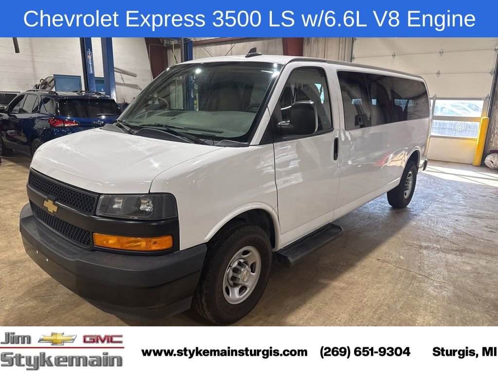 2022 Chevrolet Express 3500 LS 12 Passenger Summit White * USB ADAPTER *, * 3RD ROW SEATS *, * Park Assist *, *** COMPLEMENTARY 3 MONTH - 3,000 MILE POWERTRAIN WARRANTY ***, **Call 269-651-9304**, Express 3500 LS 12 Passenger, Extended Passenger Van, 6.6L V8, Summit White, Medium Pewter Vinyl, 2 Speakers, 3rd row seats: bench, 4th-Row Bench Seat, Air Conditioning, AM/FM radio, AM/FM Stereo w/MP3 Player, Custom Vinyl Seat Trim, Delay-off headlights, Deluxe Console w/Swing Out Storage Bin, Driver door bin, Driver's Seat Mounted Armrest, Electric Rear-Window Defogger, Electronic Stability Control, Emergency communication system: OnStar and Chevrolet connected services capable, Front Bucket Seats, Fully automatic headlights, Heavy-Duty Rear Locking Differential, Occupant sensing airbag, Overhead airbag, Passenger cancellable airbag, Passenger door bin, Power door mirrors, Power steering, Power windows, Preferred Equipment Group 1LS, Rear air conditioning, Rear Park Assist, Reclining Front Bucket Seats w/Inboard Armrests, Sliding Passenger-Side Door, Traction control, Variably intermittent wipers.