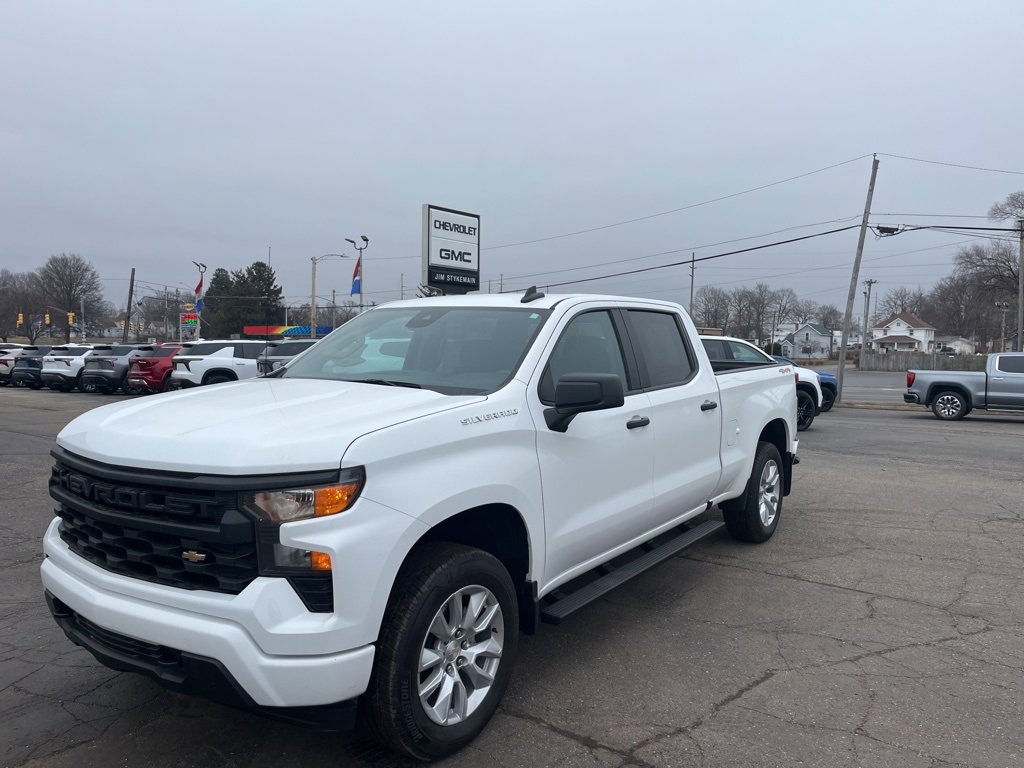 2023 Chevrolet Silverado 1500 Custom Summit White * Apple CarPlay/Android Auto *, * USB ADAPTER *, * BLUETOOTH *, * ONE OWNER *, * CLEAN VEHICLE HISTORY...NO ACCIDENTS *, * 4WD *, **Call 269-651-9304**, Silverado 1500 Custom, 4D Crew Cab, 2.7L Turbo, 4WD, Summit White, Black Cloth, 10-Way Power Driver Seat w/Lumbar, 120-Volt Bed Mounted Power Outlet, 120-Volt Instrument Panel Power Outlet, 3.5 Monochromatic Display Driver Info Center, 6-Speaker Audio System, Apple CarPlay/Android Auto, Auto High-beam Headlights, Bluetooth® For Phone, Brake assist, Bumpers: body-color, Chevrolet Connected Access Capable, Color-Keyed Carpeting Floor Covering, Compass, Custom, Custom Value Package, Deep-Tinted Glass, Driver vanity mirror, Dual Rear USB Ports (Charge Only), Electric Rear-Window Defogger, Electrical Steering Column Lock, Electronic Cruise Control, Electronic Stability Control, EZ Lift Power Lock & Release Tailgate, Following Distance Indicator, Front Frame-Mounted Black Recovery Hooks, Front Rubberized Vinyl Floor Mats, Fully automatic headlights, HD Rear Vision Camera, High Capacity Suspension Package, Hitch Guidance, IntelliBeam Automatic High Beam On/Off, LED Cargo Area Lighting, Manual Tilt Wheel Steering Column, Occupant sensing airbag, OnStar & Chevrolet Connected Services Capable, Panic alarm, Power Front Windows w/Driver Express Up/Down, Power Front Windows w/Passenger Express Down, Power Rear Windows w/Express Down, Preferred Equipment Group 1CX, Rear 60/40 Folding Bench Seat (Folds Up), Rear Rubberized-Vinyl Floor Mats, Rear step bumper, Remote Keyless Entry, Remote Vehicle Starter System, Security system, SiriusXM Radio, Standard Tailgate, Theft Deterrent System (Unauthorized Entry), Trailering Package, Wheels: 20 x 9 Bright Silver Painted Aluminum, Wi-Fi Hot Spot Capable, Wireless Phone Projection. Jim Stykemain Chevrolet GMC in Sturgis MI is closer than you think. On the corner of M66 and US12 in Sturgis. Driving time to Jim Stykemain Chevrolet GMC: La Grange = 15 minutes, White Pigeon = 18 minutes, Three Rivers = 22 minutes, Coldwater = 30 minutes. Elkhart = ONLY 39 MINUTES! COME CHECK US OUT. Visit us online at STYKEMAINSTURGIS.COM Proudly serving: Sturgis, Howe, LaGrange, Elkhart, Kalamazoo, Angola, Portage, Battle Creek, Detroit, Indianapolis, South Bend, Fort Wayne, and all of greater Ohio, Michigan, and Indiana.