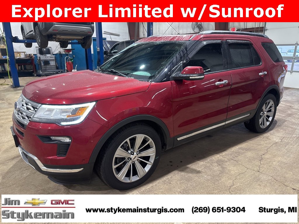 2018 Ford Explorer Limited Ruby Red Metallic * USB ADAPTER *, * BLUETOOTH *, * NAVIGATION GPS NAV *, * LEATHER *, * HEATED SEATS *, * KEYLESS START *, * SUNROOF *, * 3RD ROW SEATS *, * REMOTE ENGINE START *, * POWER REAR LIFTGATE *, * Park Assist *, * AWD *, *** COMPLEMENTARY 3 MONTH - 3,000 MILE POWERTRAIN WARRANTY ***, Explorer Limited, 3.5L 6-Cylinder SMPI Turbocharged DOHC, 4WD, Ruby Red Metallic, Ebony Black Leather, 3rd row seats: split-bench, Adaptive Cruise Control & Fwd Collision Warning, Air Conditioning, AM/FM radio: SiriusXM, AppLink/Apple CarPlay and Android Auto, Auto-dimming Rear-View mirror, Automatic temperature control, BLIS Blind Spot Information System, Brake assist, Electronic Stability Control, Enhanced Active Park Assist w/Parallel Park, Equipment Group 301A, Exterior Parking Camera Rear, Ford Safe & Smart Package, Front Center Armrest, Front fog lights, Front License Plate Bracket, Fully automatic headlights, Garage door transmitter, Heated front seats, Heated steering wheel, Illuminated entry, Inflatable Rear Safety Belts, Lane-Keeping System, Low tire pressure warning, Memory seat, Multi-Contour Front Seats w/Active Motion, Navigation System, Outside temperature display, Overhead console, Panic alarm, Perforated Leather Heated/Cooled Bucket Seats, Power driver seat, Power windows, Premium audio system: Sony, Radio: Sony Audio System w/CD Player, Rain-Sensing Wipers (Front Only), Rear air conditioning, Remote keyless entry, Roof rack: rails only, Split folding rear seat, SYNC 3 Communications & Entertainment System, Twin Panel Moonroof. Jim Stykemain Chevrolet GMC in Sturgis MI is closer than you think. On the corner of M66 and US12 in Sturgis. Driving time to Jim Stykemain Chevrolet GMC: La Grange = 15 minutes, White Pigeon = 18 minutes, Three Rivers = 22 minutes, Coldwater = 30 minutes. Elkhart = ONLY 39 MINUTES! COME CHECK US OUT. Visit us online at STYKEMAINSTURGIS.COM Proudly serving: Sturgis, Howe, LaGrange, Elkhart, Kalamazoo, Angola, Portage, Battle Creek, Detroit, Indianapolis, South Bend, Fort Wayne, and all of greater Ohio, Michigan, and Indiana.Awards:* 2018 KBB.com Brand Image Awards * 2018 KBB.com 10 Most Awarded Brands