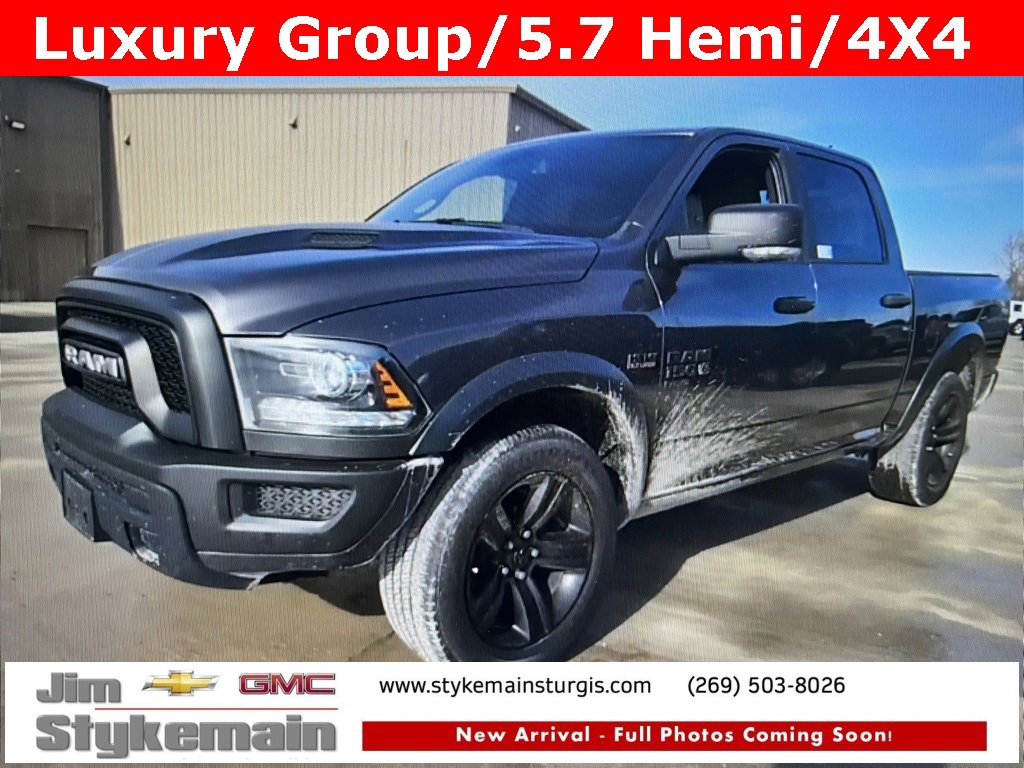 2021 Ram 1500 Classic Warlock Luxury Group Granite Crystal Metallic Clearcoat * Apple CarPlay/Android Auto *, * USB ADAPTER *, * BLUETOOTH *, * 4WD *, *** COMPLEMENTARY 3 MONTH - 3,000 MILE POWERTRAIN WARRANTY ***, **Call 269-651-9304**, 1500 Classic Warlock Luxury Group, HEMI 5.7L V8 Multi Displacement VVT, 4WD, Granite Crystal Metallic Clearcoat, 1-Yr SiriusXM Guardian Trial, 2nd Row In Floor Storage Bins, 4-Wheel Disc Brakes, 4x4 Flat Black Badge, 6 Speakers, 8.4 Touchscreen Display, Air Conditioning ATC w/Dual Zone Control, Alloy wheels, Apple CarPlay, Auto-Dimming Exterior Mirrors, Auto-Dimming Rear-View Mirror, Bi-Function Halogen Projector Headlamps, Black Door Handles, Black Exterior Truck Badging, Black Grille w/RAM Lettering, Black Headlamp Filler Panel, Black Powder Coated Front Bumper, Black Powder Coated Rear Bumper, Black RAM Head Tailgate Badge, Black Wheel Flares, Center Hub, Class IV Receiver Hitch, Cluster 7.0 TFT Color Display, Delay-off headlights, Dual front impact airbags, Dual Rear Exhaust w/Bright Tips, Electronics Group, Exterior Mirrors Courtesy Lamps, Exterior Mirrors w/Supplemental Signals, Front anti-roll bar, Front Wheel Well Liners, Glove Box Lamp, Google Android Auto, GPS Antenna Input, HD Radio, Hood Decal, Integrated Voice Command w/Bluetooth, Leather Wrapped Steering Wheel, LED Bed Lighting, Luxury Group, Media Hub (2 USB, AUX), Overhead console, Overhead Console w/Garage Door Opener, ParkSense Rear Park Assist System, Power Heated Fold-Away Mirrors, Power-Folding Mirrors, Quick Order Package 26F Warlock, Radio data system, Radio: Uconnect 4C w/8.4 Display, Raised Ride Height, Rear Dome w/On/Off Switch Lamp, Rear Extra HD Shock Absorbers, Remote Start & Security Alarm Group, Security Alarm, Semi-Gloss Black Hub, Sport Tail Lamps, Steering Wheel Mounted Audio Controls, Sun Visors w/Illuminated Vanity Mirrors, Universal Garage Door Opener, USB Host Flip, Warlock, Warlock Decal, Warlock Decor Package (DISC), Warlock Interior Accents, Wheels: 20 x 9 Semi-Gloss Black Aluminum. Jim Stykemain Chevrolet GMC in Sturgis MI is closer than you think. On the corner of M66 and US12 in Sturgis. Driving time to Jim Stykemain Chevrolet GMC: La Grange = 15 minutes, White Pigeon = 18 minutes, Three Rivers = 22 minutes, Coldwater = 30 minutes. Elkhart = ONLY 39 MINUTES! COME CHECK US OUT. Visit us online at STYKEMAINSTURGIS.COM Proudly serving: Sturgis, Howe, LaGrange, Elkhart, Kalamazoo, Angola, Portage, Battle Creek, Detroit, Indianapolis, South Bend, Fort Wayne, and all of greater Ohio, Michigan, and Indiana.